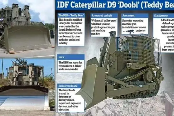 بولدوزر زرهی D۹R با نام مستعار دوبی (Doobi) یا تدی خرسه (Teddy Bear) با ۱۵ تن زره افزودهشده و تیغه تقویتشده، در برابر اسلحه یا مواد منفجره غیرقابل نفوذ است.