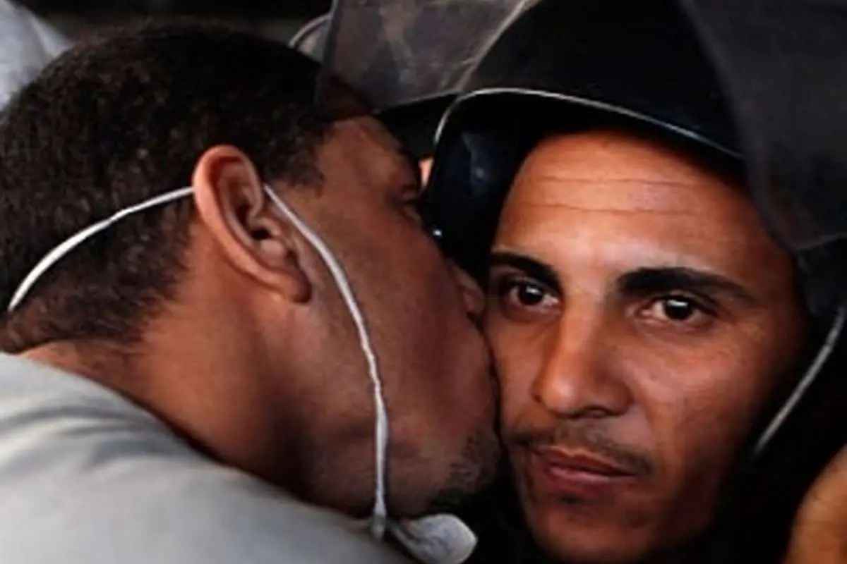 عکس> بوسه معترض مصری بر گونه پلیس