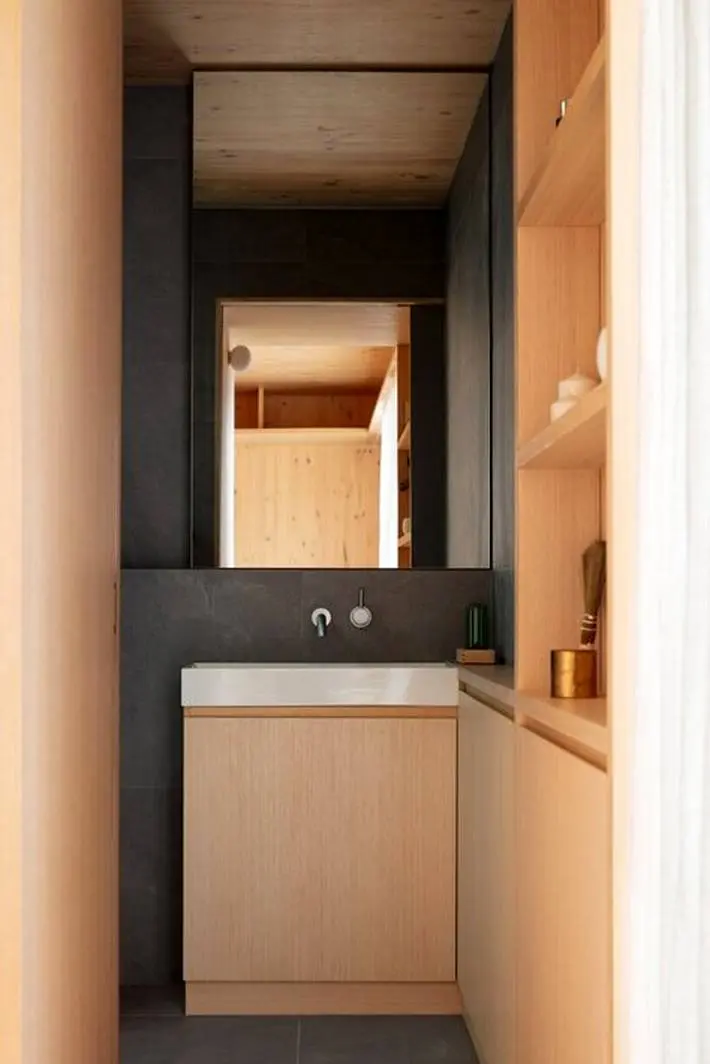 تنها با مساحت ۲۰ متر مربع، استودیو TRIAS باید به صورت هوشمندانه از فضا استفاده میکرد. برای غلبه بر چالشهای مرتبط با این اندازه جمع و جور، مینیما به صورت یک سری از مناطق طراحی شده است. آشپزخانه و حمام در یک سمت قرار گرفته اند، در شرایطی که فضاهای نشیمن و خواب بخش اصلی را اشغال میکنند. فضاهای انباری و ذخیره سازی داخلی اطراف این قسمت در نظر گرفته شده اند که ایجاد فضایی باز و انعطاف پذیر در میانه سازه را ممکن کرده است.