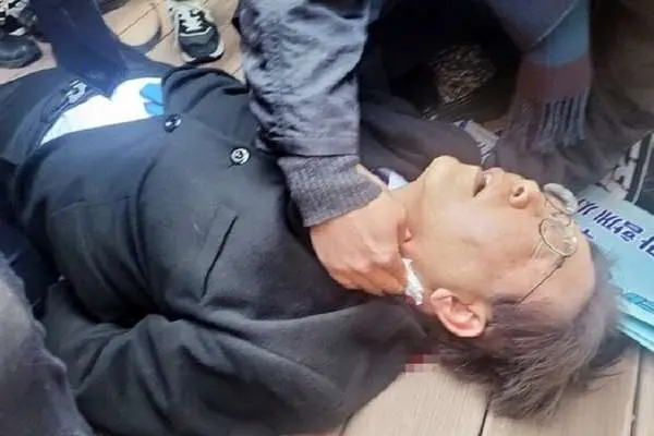 (ویدئو) حمله به رهبر مخالفان کره ای با چاقو