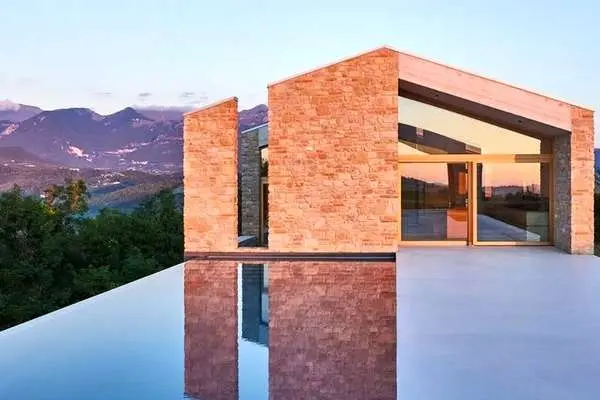 سنگ بازیابی شده و رنگی که برای خانه جدید استفاده شده دیوارهای خانه روستایی اصلی را تداعی میکند. این در فضای داخلی نیز استفاده میشود و مرزهای بین داخل و خارج را بیشتر محو میکند. شکل اولیه ساختمان جدید از یک خانه کهن الگویی با سقف شیبدار الگوبرداری شده است. در یک پیچ و تاب غیر متعارف به نظر میرسد که این بنا قطعه قطعه شده و بخشهای جدا شده آن در یک توالی خطی مرتب شدهاند که هر بخش بازتاب بخش دیگر است. این طرح برای مقاومت در برابر لرزشهای آینده این گونه طراحی شده است. ارتباط آن بین داخل و خارج با ترکیب پنجرههای عظیم که مناظر زیبا را قاب میکنند تقویت میشود. بین هر بخش از خانه تراسها و یک استخر وجود دارد که آسمان را منعکس میکند.
