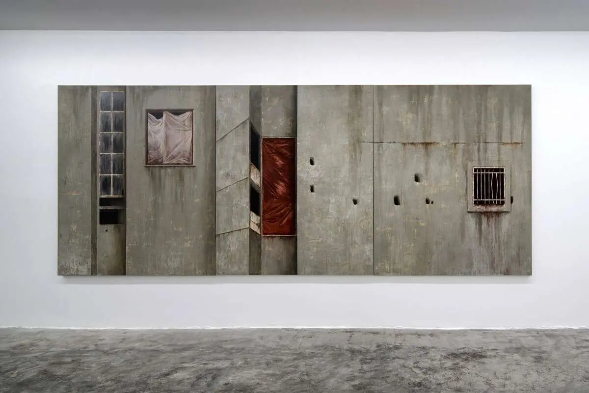 سردیِ سبزهای کدر نقاشیاش، چیزیست بیش از نمایشِ دیوار سیمانی. چیزیست در نمایشِ اندامِ دستگاه انهدامِ زندگی. بیآنکه دستهای آن دستگاه پیدا باشد، رد خونش بر روی دیوارها جامانده. رد سیاستهایش در مرگِ معنا و زندگی از شهر. اما ما در عین فقدان انسان و فقدان گفتگو، پنجرههایی میبینیم که روبروی هم قرار گرفتهاند، اما بستهاند و شکسته. راههایی که به هیچ سو نمیرسند، پلههایی که مبدا و مقصدی ندارند. نمیدانم این دستبردن به قواعدِ پرسپکتیو، این جزئینگاریهای از نظر مضمونی اکسپرسیو، عامدانه بوده یا ناخودآگاه، اما بهرحال نتیجهاش، زندهسازی امکانهای تفسیری_کناییست از وضعیت حاضر ما، از جامعهای که فضای امیدش تنگتر و خفهتر میشود و به فضای رویای درونش پرتاب میشود. رویاهایی که خود نیز منقضی میشوند.