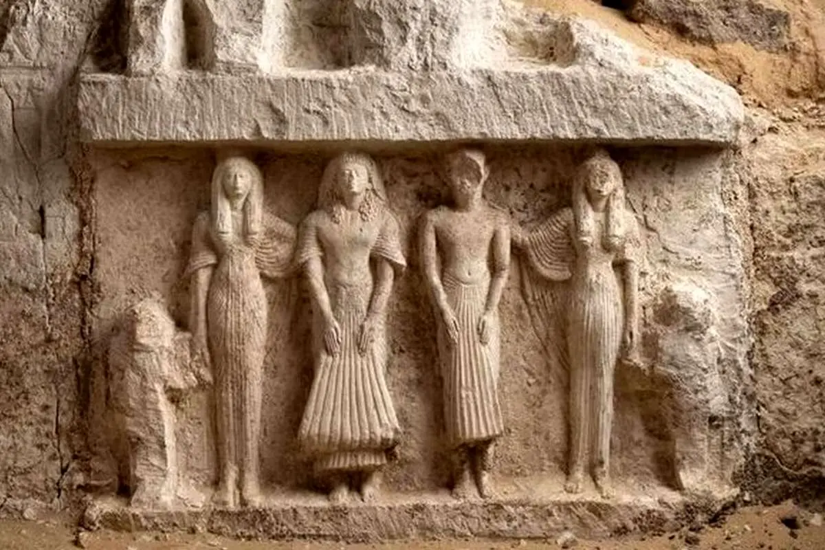 مجسمه سنگی از مقبره فرازر، گورستانی در صخرههای نزدیک المنیه، مصر