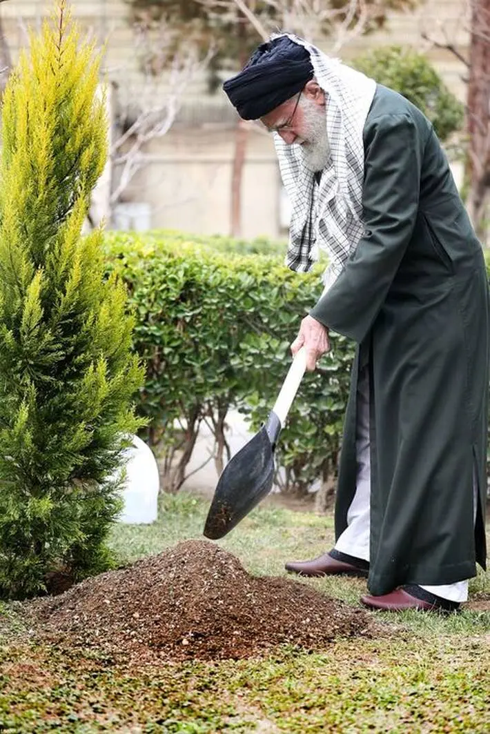 حضرت آیتالله خامنهای رهبر انقلاب اسلامی در هفته منابع طبیعی و همزمان با روز درختکاری صبح امروز سهشنبه سه اصله نهال کاشتند.