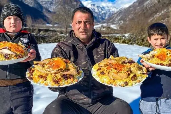(ویدئو) طرز پخت پلو مرغ سنتی به سبک آشپز مشهور آذربایجانی در کوهستان