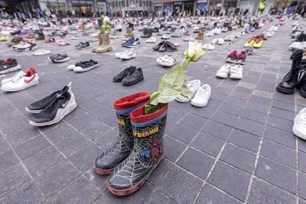 در هلند، شهر اورترخت ده هزار کفش به یاد ۱۳ هزار کودکی که در جنایات جنگی و نسل کشی اسرائیل در غزه جان باختند توسط مردم چیده شد