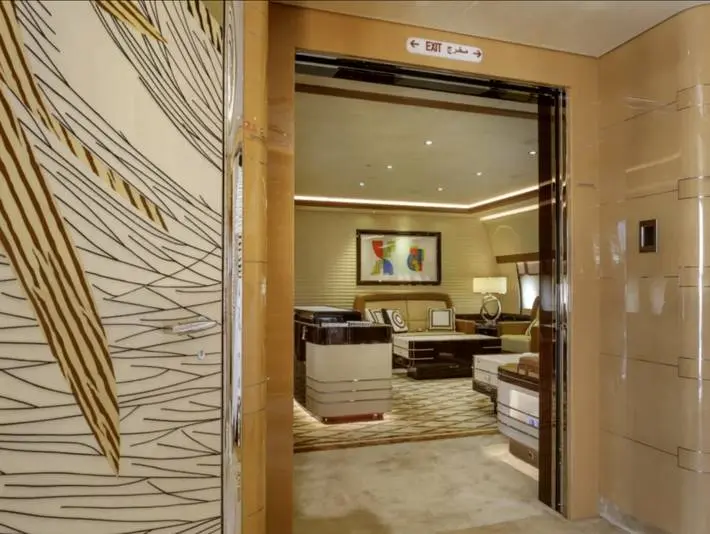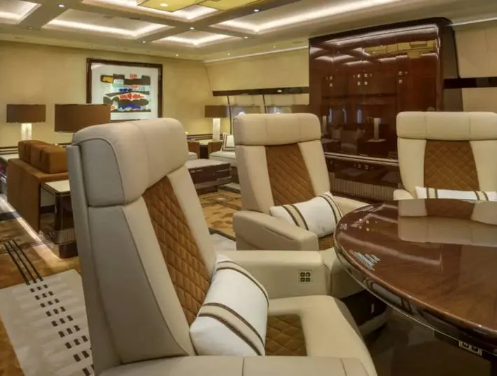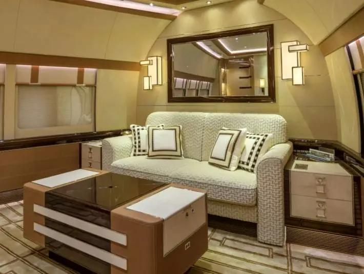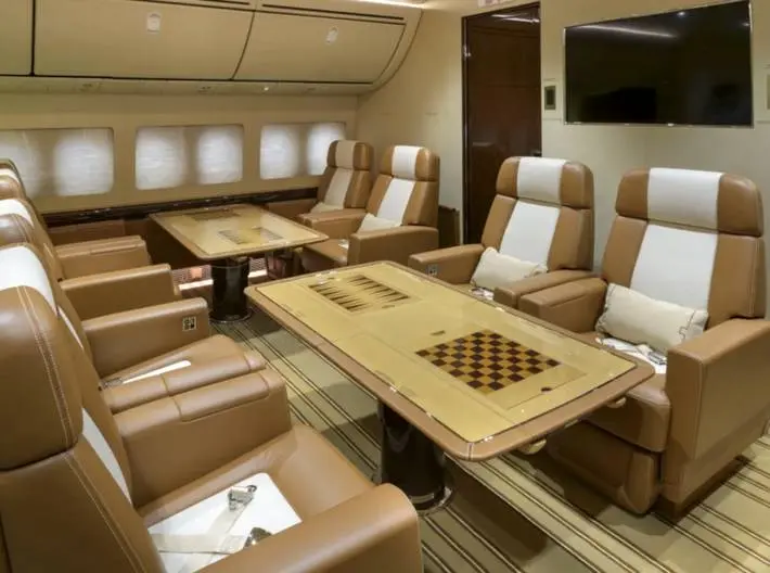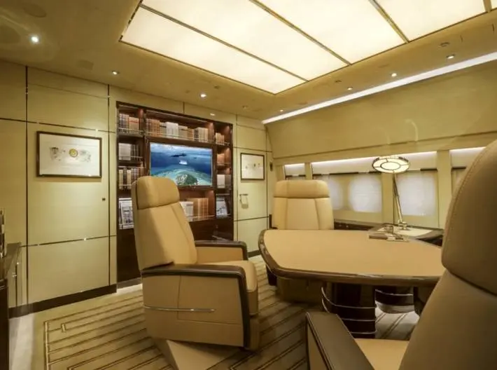 فرارو- فضای داخلی هواپیما به سوئیتهای پرآذین، اتاق های کابینت، سالن های استراحت، اتاق های غذاخوری، قسمت های نشیمن مسافران و حمام تقسیم می شود. این هواپیما یک فروند بوئینگ 747 به ارزش 400 میلیون دلار است که بزرگترین هواپیمای خصوصی جهان محسوب می شود.