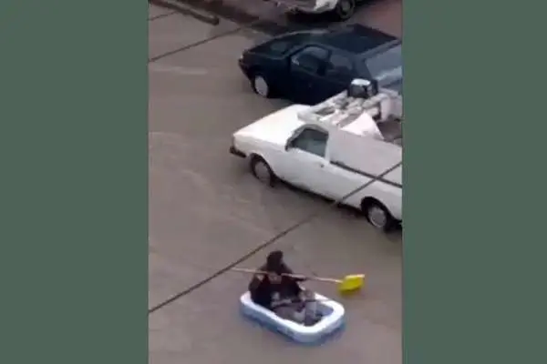 (ویدیو) قایق سواری در خیابانهای سنندج