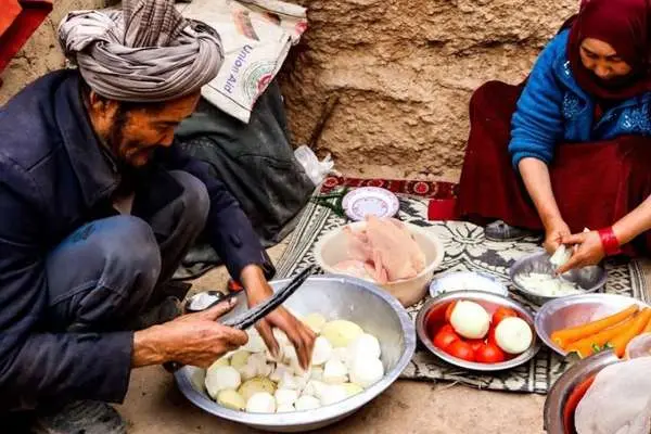 (ویدیو) طرز تهیه آبگوشت مرغ و نان ساجی به روش زوج غارنشین افغانستانی