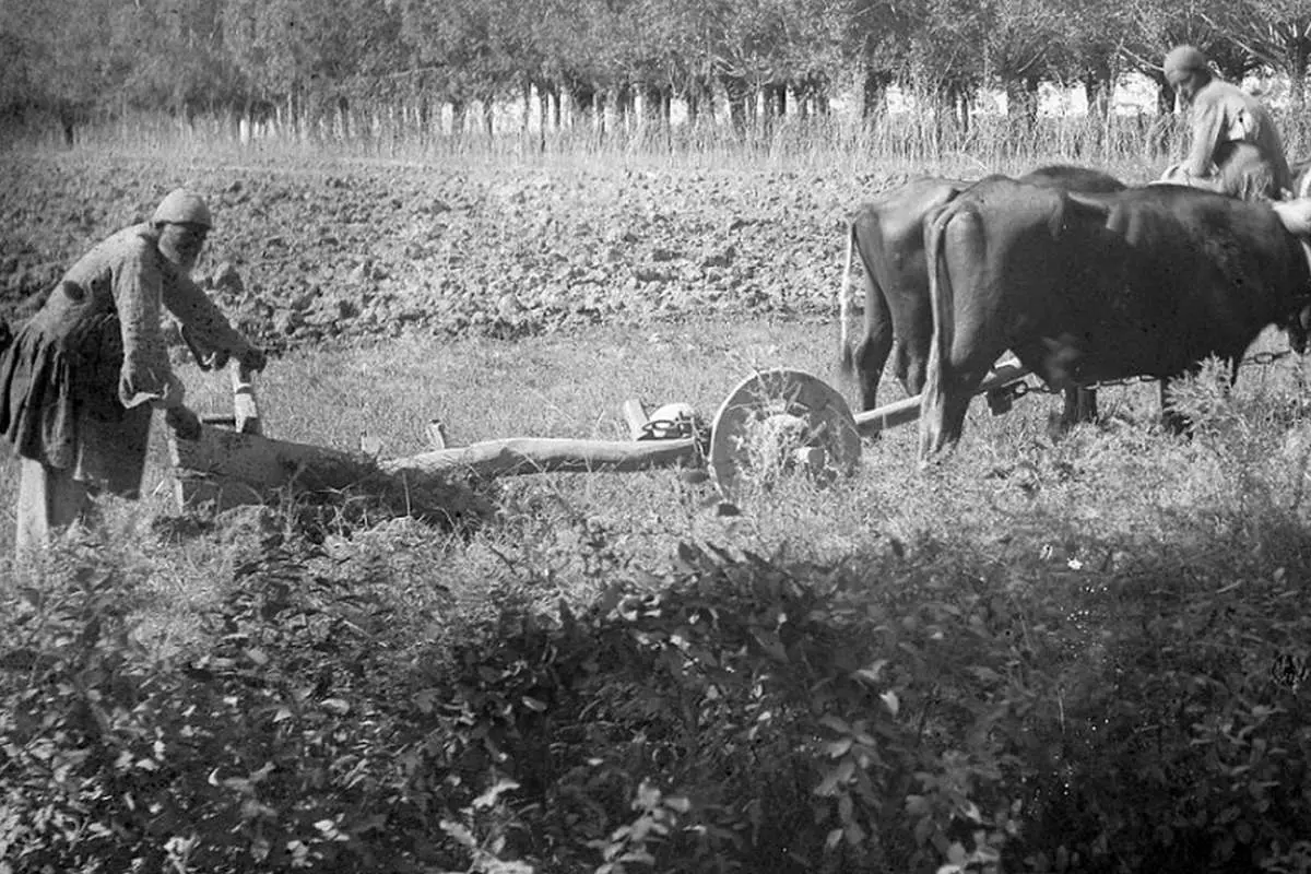 عکس نخست امروز تصویری خاص و نوستالژیک از یک زمین کشاورزی است؛ کشاورزان در حال شخم زدن زمین و کاشت بذر هستند؛ همه چیز در این تصویر کاملا اصیل و «سنتی» است؛ از گاوهای شخمزن و خیشهای چوبی تا لباسها و سیمای کشاورزان.