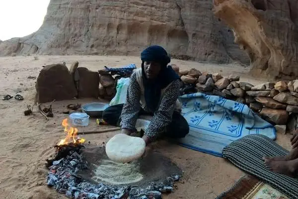 (ویدیو) طرز تهیه نان تاگولا توسط صحرانشینان الجزایری
