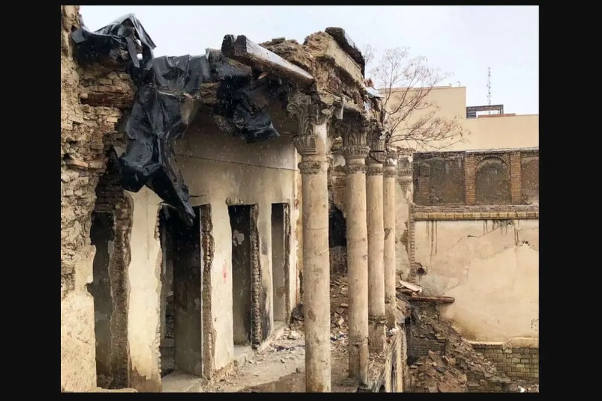 (عکس) تاج عمارت قاجاری «امینلشکر» فروریخت