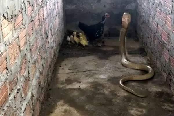 (ویدئو) دفاع حیرت انگیز مرغ مادر از جوجه هایش در برابر شاه کبرا