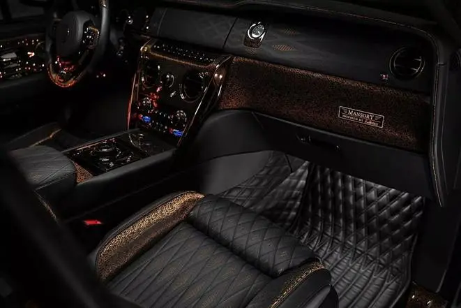 از آنجایی که ظاهر بیرونی آن چشمگیر است، اما باید برای چیزی خاصتر در کابین خودرو آماده شوید! منصوری صندلیها را با چرم مشکی همراه با تریم مسی رنگ پوشانده و مجددا حروف عربی در قسمتهای مختلفی دیده میشود.