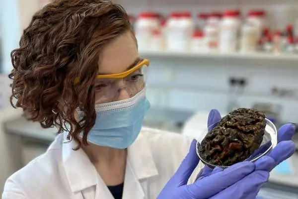 تکههای مغز فردی که حدود ۲۰۰ سال پیش در یک گورستان ویکتوریایی (بریتانیا) دفن شده بود. مغز این فرد، تنها بافت نرمی بود که به طور کامل تجزیه نشده بود.