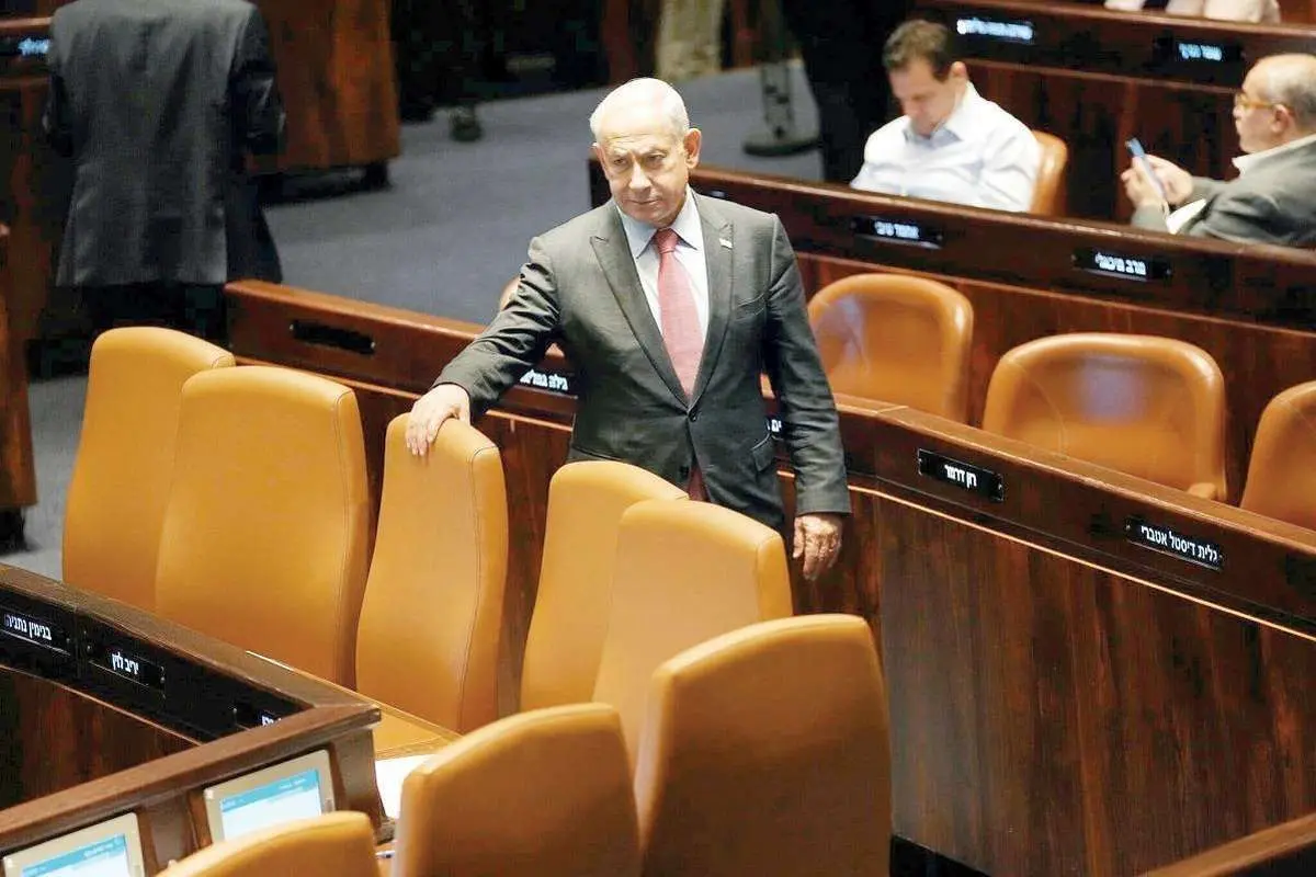 یکی از راههایی که امکان خروج نتانیاهو را از قدرت فراهم میکند، سقوط ائتلافش است. نخستوزیری اسرائیل از ۱۲۰ کرسی کنست، ۶۴ کرسی را هدایت میکند. پس اگر ۵ کرسی کم شود دولت سقوط میکند و انتخابات در عرض سه ماه باید برگزار شود. حزب لیکود ۳۲ کرسی را در انتخابات نوامبر ۲۰۲۲ از آنِ خود کرد که بیشترین تعداد کرسی از هر حزبی بود. اما برای تشکیل دولت نیاز داشت با ۵ حزب دیگر ائتلاف کند که شامل احزاب کوچک راستگرا بهرهبری بزالل اسموتریچ و ایتامار بنگویر است. ترکیب ۱۳ کرسی آنها نتانیاهو را در قدرت نگه میدارد. آنها در عین حال بهعنوان نوعی حزب مخالف راستگرا در داخل دولت عمل میکنند. اسموتریچ و بنگویر عضو کابینه امنیتی جنگ نیستند. این ائتلاف شامل اپوزیسیون راست میانه مانند بنیگانزس و گادی آیزنکوت است که پس از هفتم اکتبر به این ائتلاف پیوستند تا فعلاً ائتلاف را قویتر کنند.