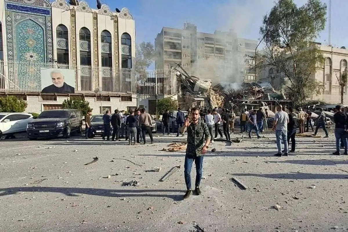 بخش کنسولی یکی از ساختمانهای دوگانه مقر سفارت جمهوری اسلامی ایران در سوریه است که روز دوشنبه گذشته در اثر حمله موشکی رژیم صهیونسیتی به صورت کامل تخریب شد.