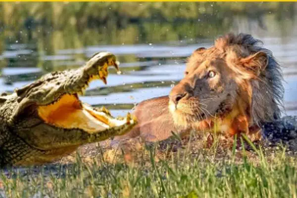 تصاویری در فضای مجازی پربازدید شده است که یک شیر نر گرسنه، از عظمت کروکودیل میترسد و جرئت جلو رفتن ندارد.