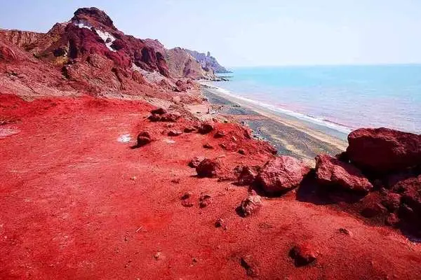 در جزیرۀ هرمز وقتی باران میبارد آب دریا قرمز میشود.