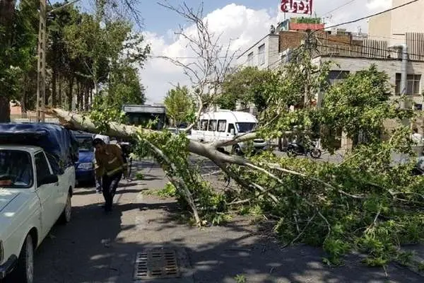 (ویدیو) وزش باد شدید باعث شکستن درختان این شهر شد