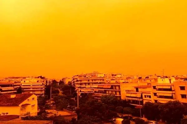روز ۲۴ آوریل ۲۰۲۴، این اتفاق زمانی در آتن رخ داد که ابرهای گردوغبار که از کویر صحرا در آفریقا میآمدند، مه نارنجی رنگ غمآلودی را بر فراز پایتخت یونان ایجاد کردند. به گفته مقامات، این یکی از بدترین حادثههایی است که از سال ۲۰۱۸ به یونان وارد شده است. کویر صحرا سالانه بین ۶۰ تا ۲۰۰ میلیون تن گردوغبار معدنی تولید میکند. بیشتر گردوغبار به سرعت به زمین میریزد، اما برخی از ذرات کوچک میتوانند مسافتهای زیادی را طی کنند و حتی به اروپا میرسند.