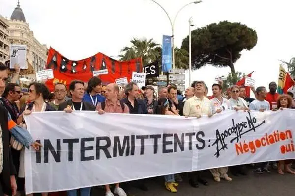 دومین نقطه اختلاف، برنامه بیمه بیکاری منحصر به فرد فرانسه برای کارکنان و تکنسینهای بخش سرگرمی است. این طرح از کارکنان بخش سرگرمی با قراردادهای کوتاه مدت با مزایای بیکاری در زمانی که بین یک شغل یا پروژه با پروژه بعدی هستند، حمایت میکند. برای واجد شرایط بودن، کارکنان باید بتوانند ثابت کنند که ساعات مشخصی را در طول سال کار کردهاند. پرداختها از طریق مالیاتهای پرداخت شده توسط کارفرمایان تأمین میشود، اما به دلیل ابهام در مقررات، بسیاری از کارکنان جشنوارههای سینمایی فرانسه از مزایای بیکاری محروم میمانند و با قراردادهای کوتاه مدت ثابت استخدام میشوند.