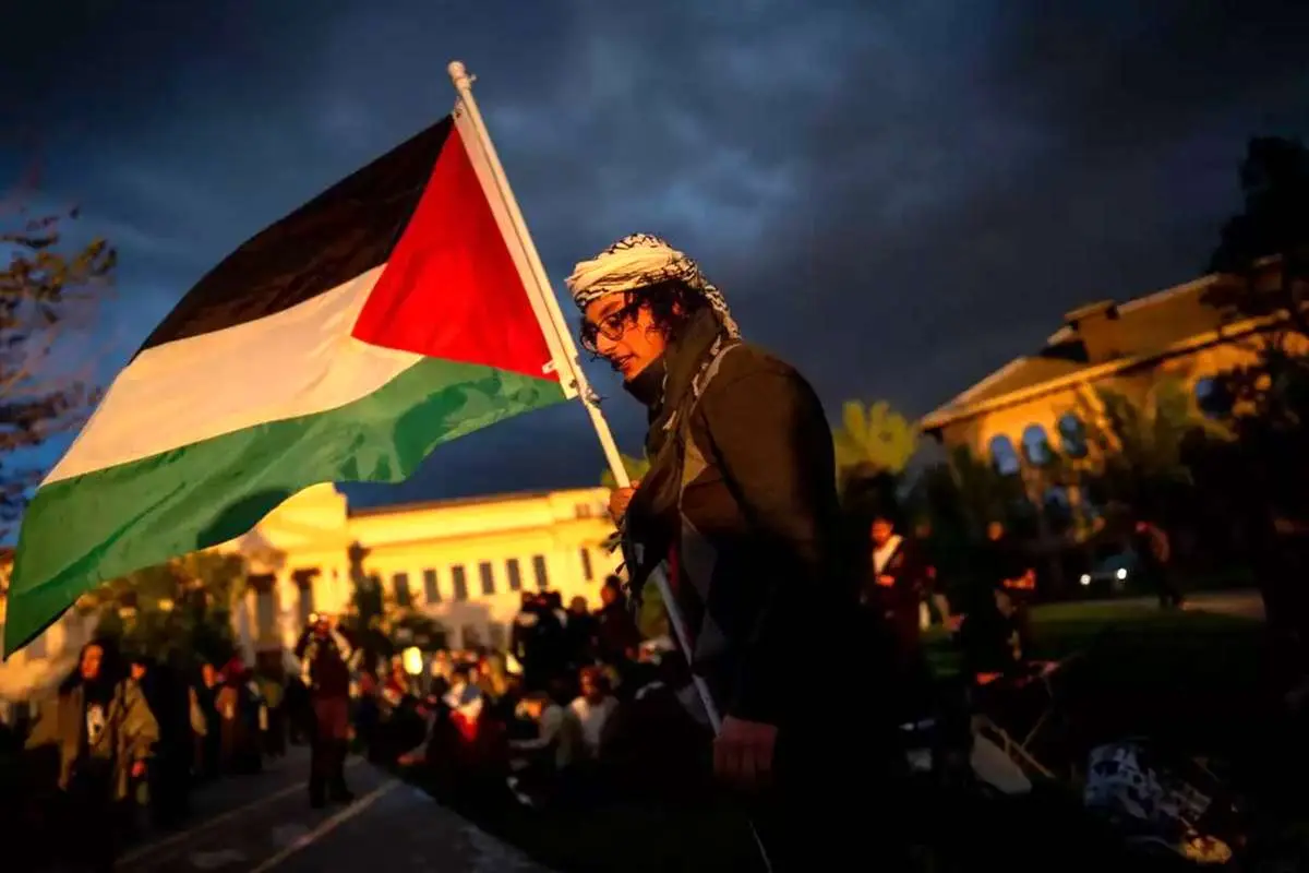 (ویدئو) اهتزاز پرچم فلسطین در دانشگاه جورج واشنگتن آمریکا