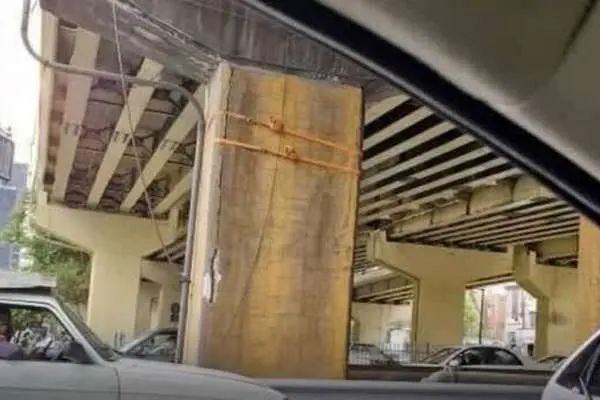 ظهر امروز تصویری از یکی از ستونهای بتنی پل میرداماد تهران در شبکههای اجتماعی منتشر شد که گویی ترکهای این ستون بتنی توسط دو تسمه مهار شده است!