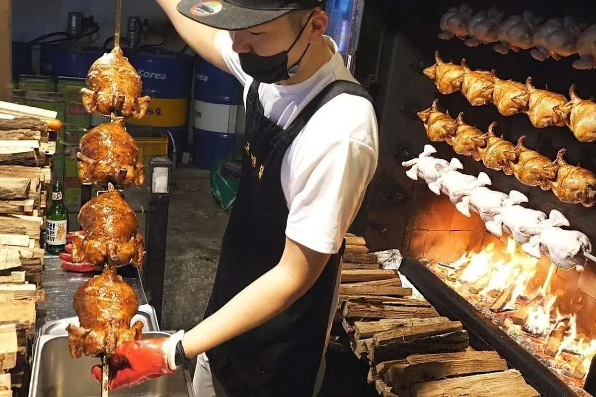 (ویدیو) پخت متفاوت چلوکباب مرغ هیزمی در کره جنوبی