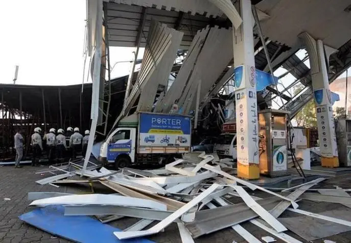 دیروز رسانههای هندی گزارش دادند که بادهای طوفانی قدرتمند این سازه عظیم را ویران کرده و آن را روی یک ساختمان و دهها اتومبیل انداخت و در این حادثه ۵۹ نفر نیز زخمی شدند. در حالی که ۶۷ نفر از زیر آوار بیرون آورده شدند، اما ممکن است هنوز افراد دیگری زیر آوار باشند.