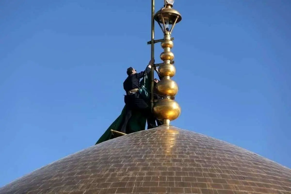 همزمان با اعلام خبر شهادت رئیس جمهور و هیات همراه وی پرچم گنبد حرم رضوی به رنگ سیاه درآمد.