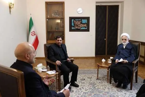 به گزارش جماران، در این جلسه که بعد از ظهر (دوشنبه) به میزبانی محمد مخبر معاون اول رئیس جمهور و با حضور حجت الاسلام والمسلمین محسنی اژه ای، رئیس قوه قضائیه، محمدباقر قالیباف، رئیس مجلس شورای اسلامی و همچنین معاون حقوقی رئیس جمهور، قائم مقام شورای نگهبان و معاون سیاسی وزیر کشور در محل ساختمان دولت برگزار شد، راجع به نحوه اجرای اصل ۱۳۱ قانون اساسی مبنی بر طی فرایند انتخابات ریاست جمهوری در مدت ۵۰ روز بحث و تبادل نظر صورت پذیرفت.