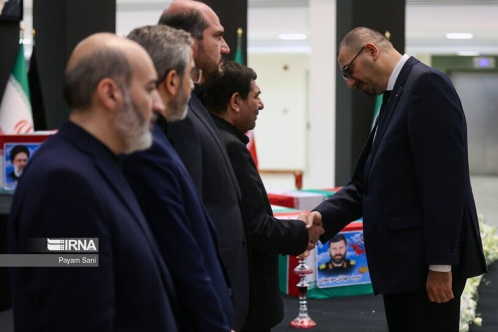فرارو- بعد از مراسم تشییع رئیس جمهور و همراهانش توسط مردم، حدود ۶۰ هیأت عالیرتبه خارجی در مراسم بزرگداشت رئیس جمهور و وزیر امور خارجه حضور یافتند.