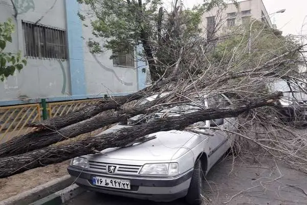 تندباد در اصفهان؛ سقوط ۵۴ درخت و خسارت به ۱۶ خودرو
