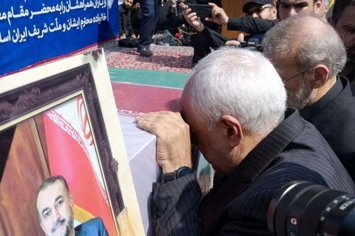 (تصویر) گریه ظریف در کنار تابوت امیرعبداللهیان