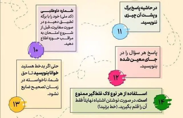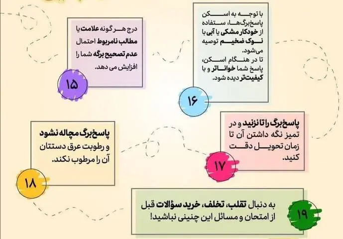 امتحانات نهایی ۳ پایه آخر دبیرستان امروز آغاز شده است و دانشآموزان هنگام حضور در جلسه امتحان باید به نکات مهمی بر اساس دستورالعملهای وزارت آموزش و پرورش توجه کنند.