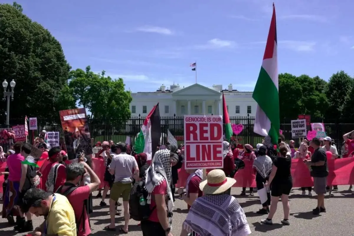 معترضان و حامیان فلسطین با تشکیل دادن خط قرمز مردمی مقابل کاخ سفید، برای بایدن خط و نشان کشیدند. حامیان فلسطین از مردم در سراسر آمریکا خواستند تا کاخ سفید را محاصره کنند و با فشار آوردن به بایدن، مانع نسلکشی صهیونیستها در غزه شوند.