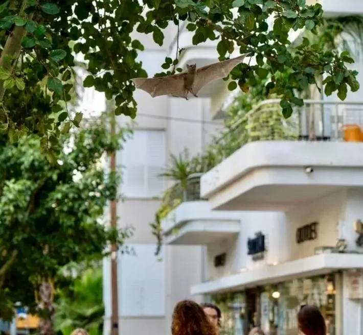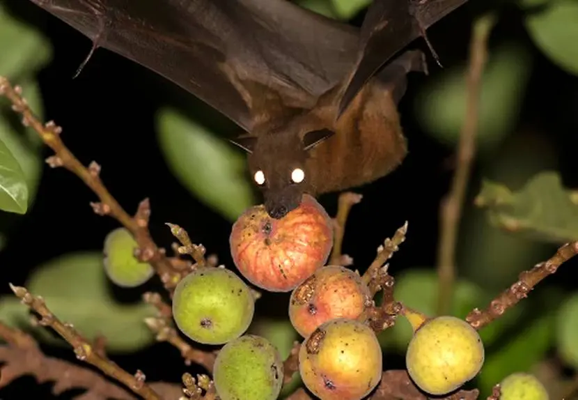 در این تصاویر جالب یک خفاش با انجیر سیکامور در دهانش را مشاهده میکنید. انجیر سیکامور نام یک گونه از سرده انجیر است.