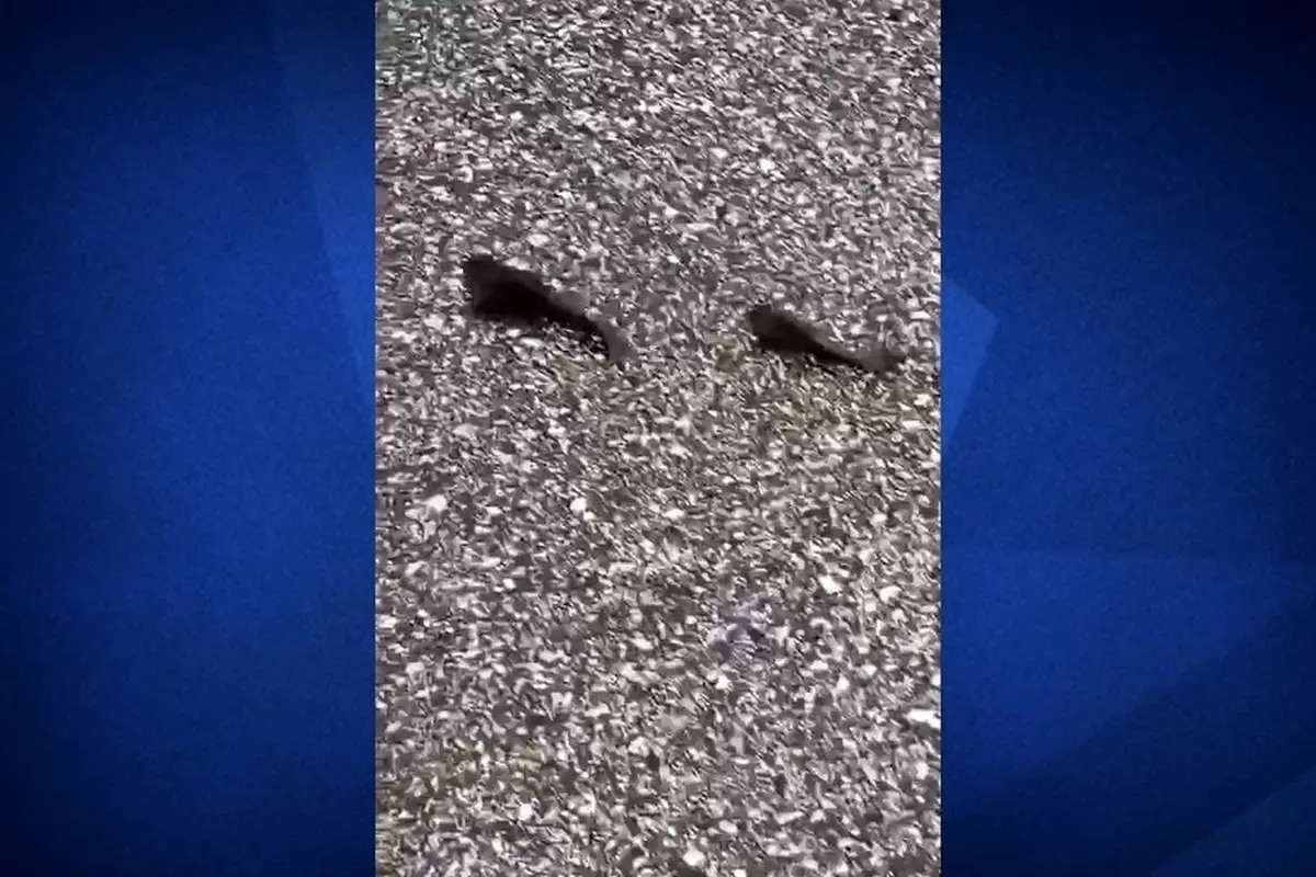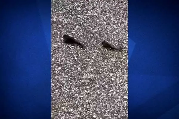 چند ماهی آناباس از روی آسفالت یک جاده عبور میکنند. ماهی آناباس تستودینئوس میتواند تا چند روز بیرون از آب زنده بماند. یک نفر از چند ماهی آناباس که در حال عبور از جادهای در آسیای جنوب شرقی بودند، فیلم گرفته است.