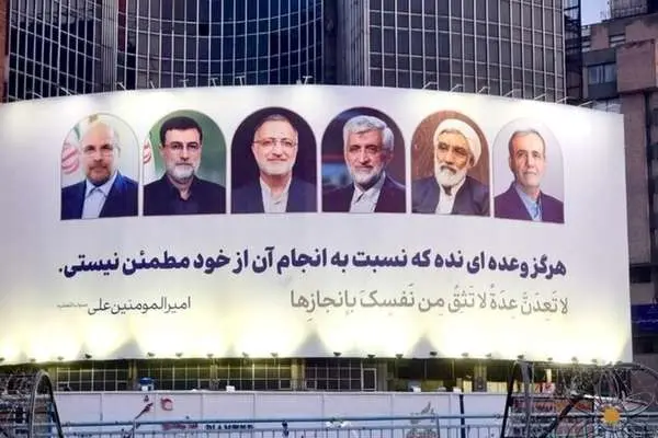 دیوارنگاره انتخاباتی میدان ولیعصر (عج) صبح امروز و در آستانه انتخابات ریاست جمهوری رونمایی شد.