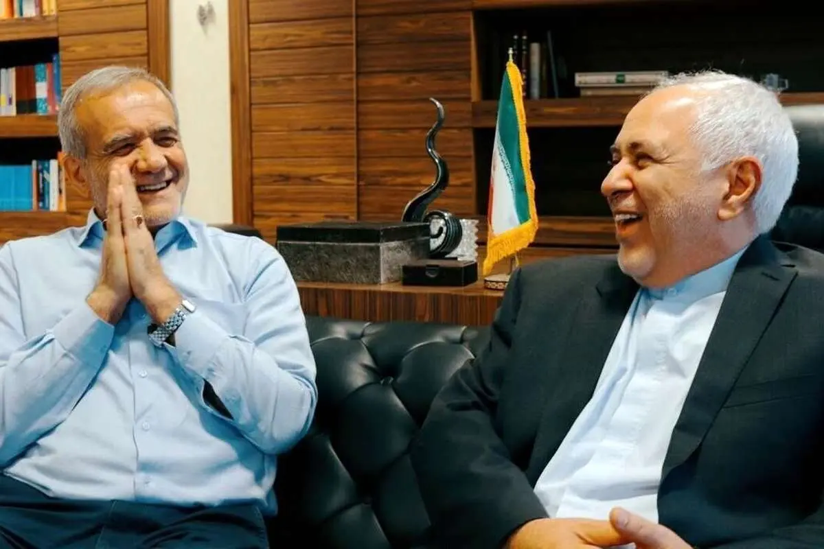 تصویری از عراقچی در کنار ظریف و پزشکیان در حال اقامه نماز را مشاهده میکنید.