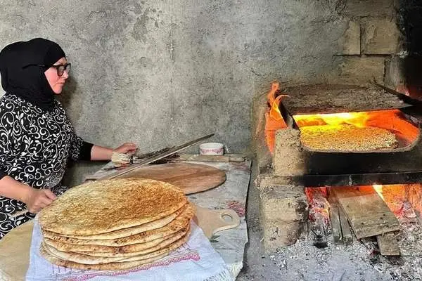 (ویدیو) فرآیند پخت دیدنی نان سنتی به روش بانوی روستایی آذربایجانی