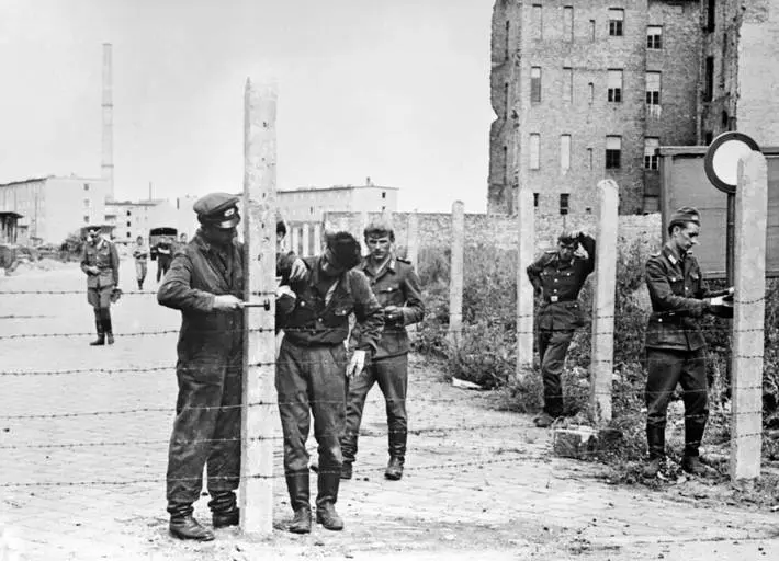 مدارک شناسایی افرادی که در نزدیکی مرزِ تازهبناشده زندگی میکردند، قبل از اینکه بتوانند وارد آپارتمان خود شوند، توسط نیروی ملی پلیس آلمان شرقی بررسی میشد.