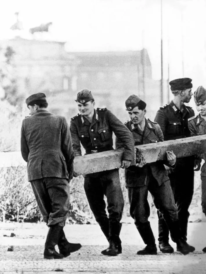 اعضای نیروهای امنیتی آلمان شرقی با استفاده از ستونهای سیمانی شروع به سد کردن نقاط مرزی با برلین غربی میکنند.