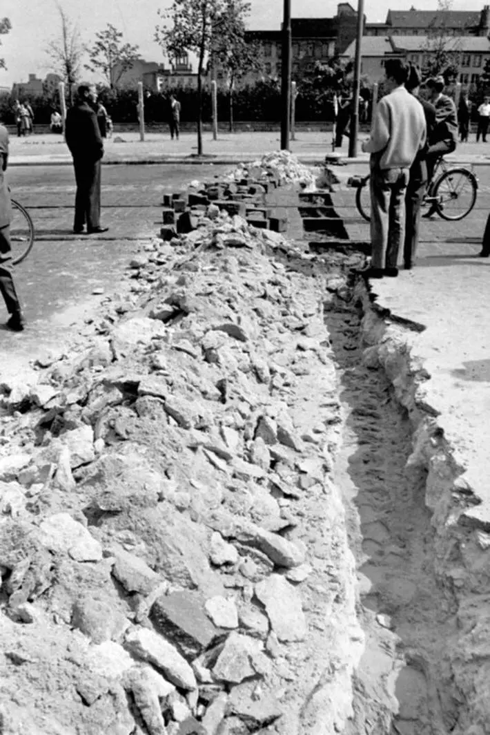 سطح جاده در پوستسدامر پلاتس، از مهمترین میدانهای برلین، کندهکاری شد تا پایهای برای دیوار فراهم شود. حتی خطوط تراموا هم در امان نماندند.