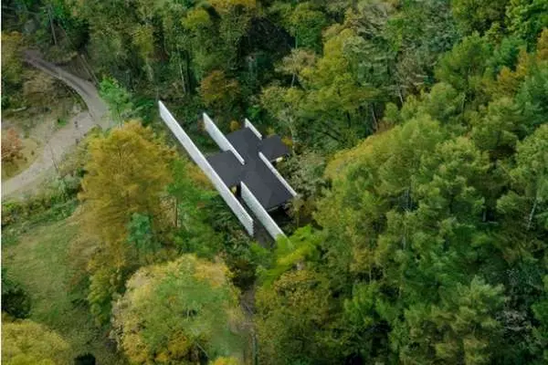 استودیوی طراحی ژاپنی نِندو (Nendo) پیرامون یک خانه مثلثی در جنگلی در منطقهی ناگانوی ژاپن را با صفحاتی از پانلهای بتونی پوشانده است.