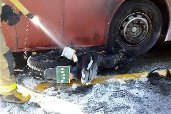 تصادف هولناک موتورسیکلت در خط ویژه بی آر تی