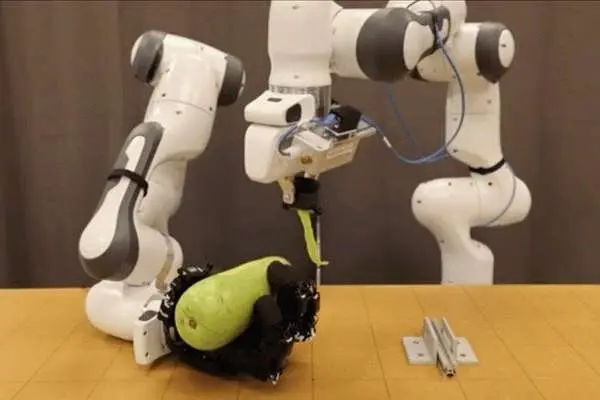 محققان امآیتی ربات جدیدی ساختهاند که میتواند برخی از کارهای آشپزخانه مثل پوستکندن صیفیجات را انجام دهد. استاد بخش برق و کامپیوتر امآیتی دربارهٔ این ربات گفته: مراحل اضافیِ چرخش میوه و پوستکندن آن چیزی است که برای انسان بسیار ساده است، ما حتی به آن فکر هم نمیکنیم؛ اما برای یک ربات چالشبرانگیز میشود.