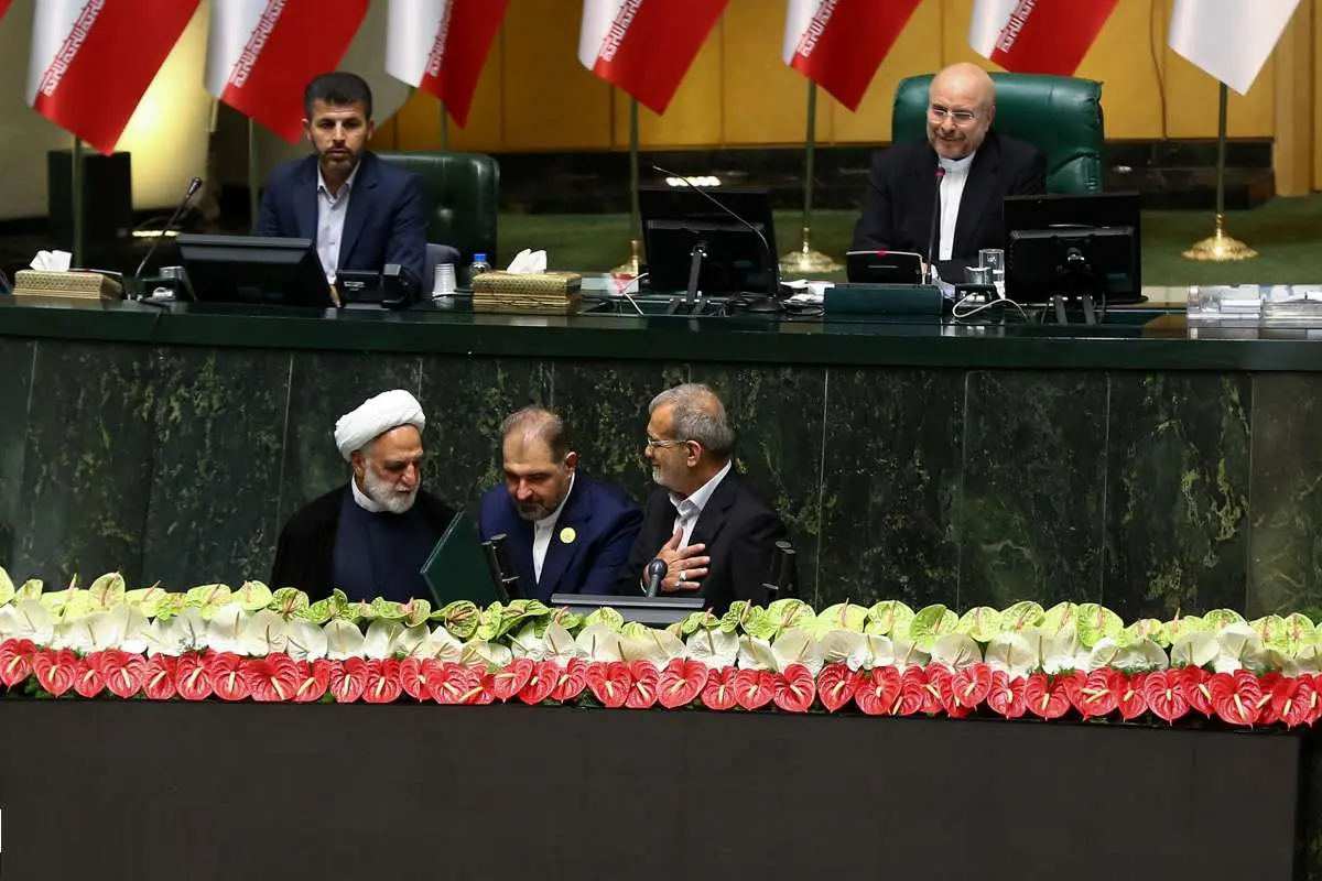 در تصویر زیر، علاوه بر علی باقری سرپرست وزارت خارجه و امیر آشتیانی وزیر دفاع، زینب سلیمانی دختر شهید سلیمانی، مریم قالیباف دختر رئیس مجلس، و زهرا پزشکیان دختر رئیس جمهوری در حال تشویق مسعود پزشکیان دیده میشوند.