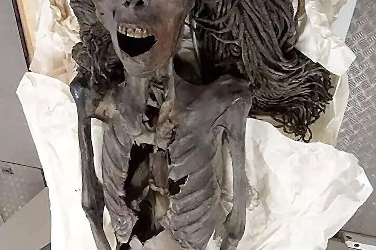 زنی که با کلاهگیس سیاه و حلقه طلایی و نقرهای در تابوت چوبی قرارگرفته بود؛ گویا به شکل عجیبی در حال جیغ و فریاد زدن بوده که مومیایی شده است. این شواهد باعث شد که او را «زن جیغ زن» بنامند. اکنون ۲۵۰۰ سال از دفن این زن میگذرد و محققان از فنهای پیشرفتهای استفاده کردهاند تا اطلاعاتی از زندگی و مرگ زن جیغ زن به دست آورند.